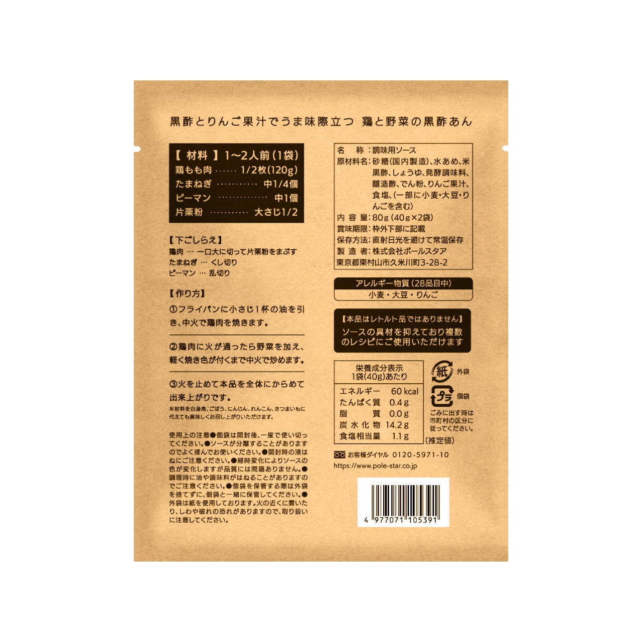 【原材料】砂糖(国内製造)、水あめ、米黒酢、しょうゆ、発酵調味料、醸造酢、でん粉、りんご果汁、食塩、(一部に小麦・大豆・りんごを含む)